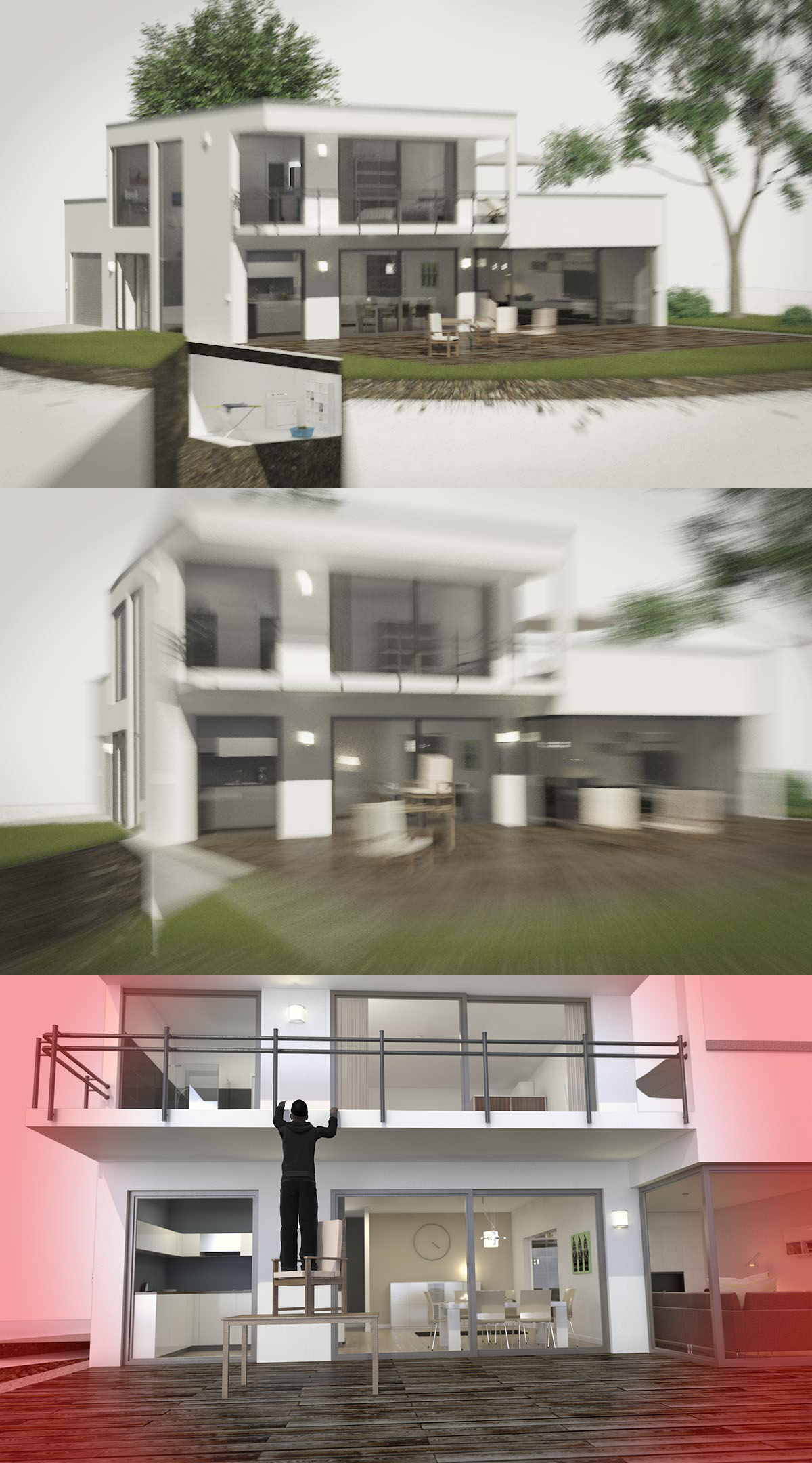 In Kombination mit der bellenden und sprechenden Funk-Außensirene werden potentielle Einbrecher schon im Garten vertrieben.